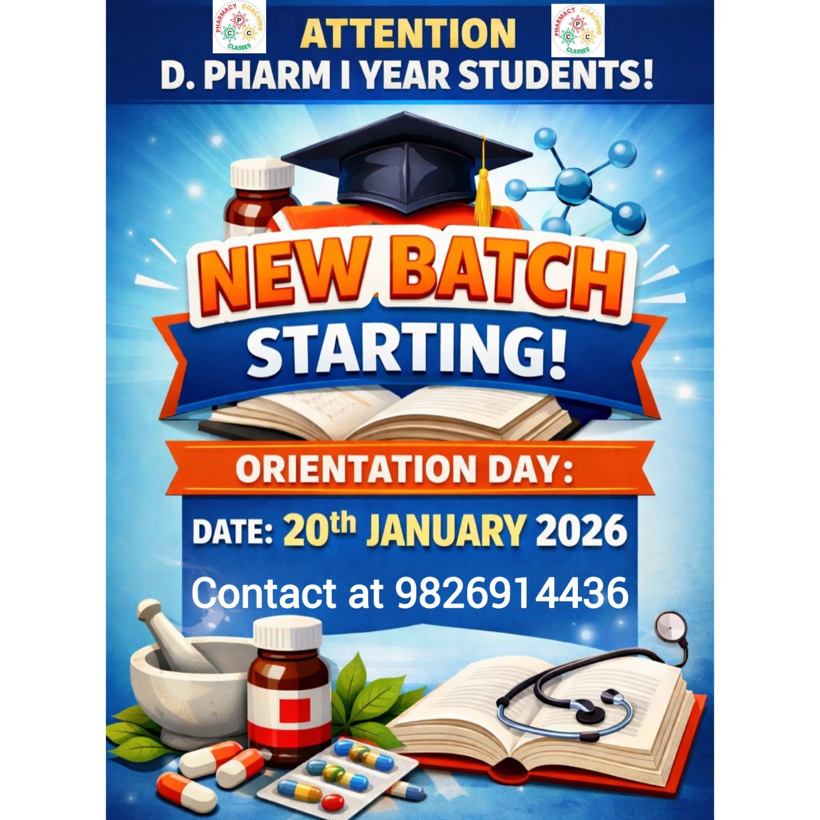A new batch for D. Pharm First Year students is starting. Offline and Online Admissions. Join Now.. Download the app 'Pharmacy Coaching Classes'